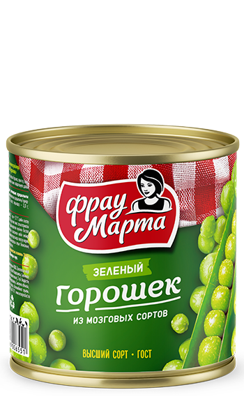 Зеленый горошек «Фрау Марта» приготовлен согласно требованиям ГОСТ, что гарантирует высокое качество продукта и сохранность витаминов и микроэлементов.