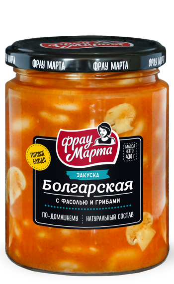 Закуска может использоваться в качестве гарнира и как отдельное блюдо, как в холодном, так и горячем виде. Закуска «Болгарская» входит в особую серию овощных закусок от «Фрау Марта», рецепты которых мы собрали для вас со всего мира.