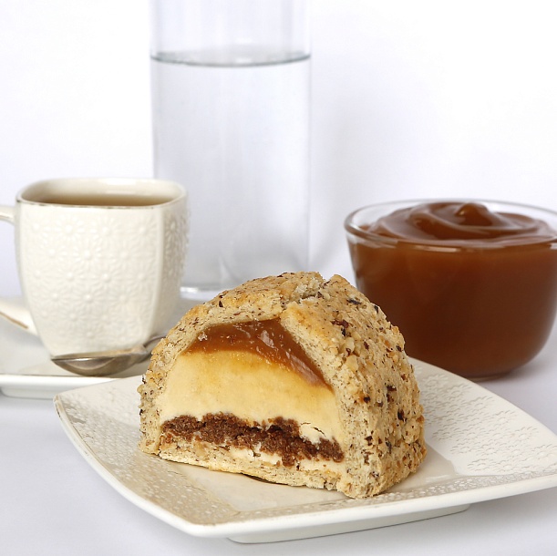 Начинка карамельная с солоноватым вкусом насыщенного темно-карамельного цвета – оптимальная начинка для кондитерских изделий из песочного теста или тортов с плотной текстурой, а также для добавления в крема.